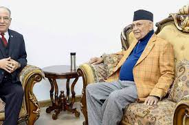 सिंहदरवारमा दाहाल र ओलीबीच भेट, गणतन्त्रविरोधी भइरहेका प्रदर्शन रोक्ने विषयमा छलफल